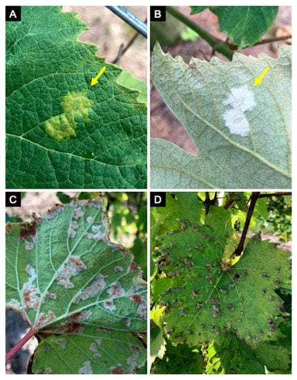 - Thiessen, L.D.; Keune, J.A.; Neill, T.M.; Turechek, W.W.; Grove, G.G.; Mahaffee, W.F. Development of a grower-conducted inoculum detection assay for management of grape powdery mildew. Plant Pathol. 2016, 65, 238–249. [Google Scholar] [CrossRef]