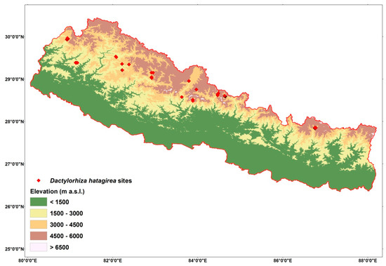 - Magar, M.; Dhital, S.; Yamada, T.; Pun, U. Dactylorhiza hatagirea: A Critical Issue for Research and Development in Nepal. Nepal J. Sci. Technol. 2020, 19, 26–38. [Google Scholar] [CrossRef]
