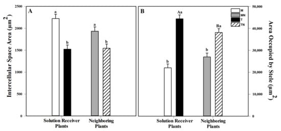 - Mock neighbor (MN): Without contact with any solution, with its root also separated into two parts, where the first half was in pot 2, allowing direct contact with the roots of the mock group, while the second half was in pot 3.