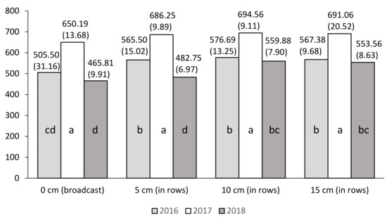 The yield of dry matter of ears and whole plants was also significantly dependent on the depth of fertilizer application. The obtained result in own research confirms previous research by Kruczek [27].