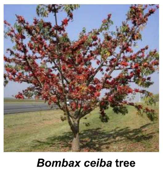 Photo of representative plant species from the Bombacoideae subfamily. Reproduced under Creative Commons Attribution-Non-Commercial 4.0 International License (https://creativecommons.org/licenses/by-nc/4.0/; accessed on 27 February 2021) from Rameshwar et al. [136] (originally Figure 1).