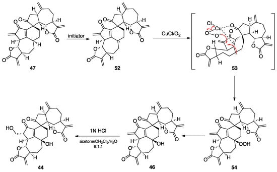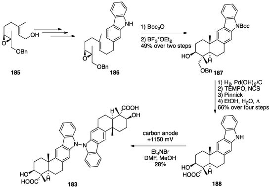 The structural and pharmacological features of this group of secondary metabolites attracted the attention of organic chemists, inducing numerous efforts to duplicate the efficiency of natural processes under laboratory conditions [68,69]. To date, only three different total syntheses have been published, two by Liu’s group and one by Peng’s group.