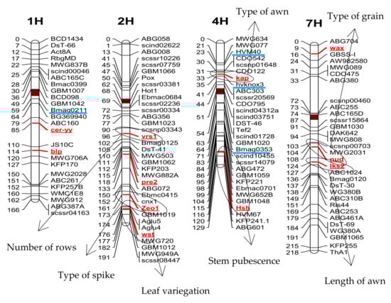 Lks2 (7H), which might be derived from the existence of some additional loci modulating awn morphology, as already discussed. It should be noted that all unexpected linkage results involve the Knox-dup marker.