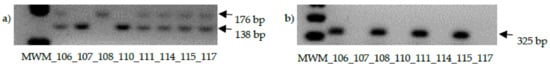 The segregation analysis of the molecular markers selected for this study (see the Materials and Methods section) is presented in