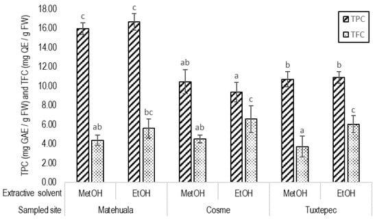 3.2. Total Polyphenolic and Flavonoid Contents