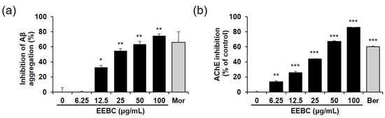 2.6. Effects of EEBC and Its Marker Compounds on AD Biomarkers