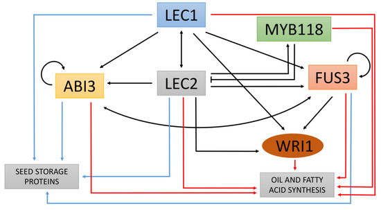 - Roscoe, T.T.; Guilleminot, J.; Bessoule, J.J.; Berger, F.; Devic, M. Complementation of seed maturation phenotypes by ectopic expression of ABSCISIC ACID INSENSITIVE3, FUSCA3 and LEAFY COTYLEDON2 in Arabidopsis. Plant Cell Physiol. 2015, 56, 1215–1228. [Google Scholar] [CrossRef] [PubMed]