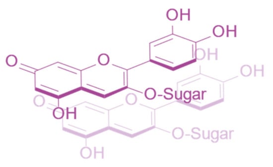 The basic requirement for a co-pigment is the presence of a planar arene moiety, which favours interaction with the anthocyanin chromophore. Increasing the size of the aromatic system or the substituent groups can have profound effects on the degree of co-pigmentation [27]. Planar flavonols such as kaempferol, quercetin, and myricetin are conjugated over their A-, B-, and C-rings and thus have the highest affinity for co-pigmentation.