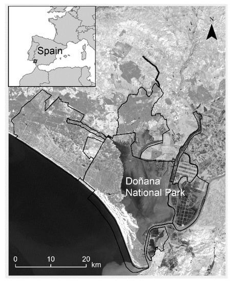 - Díaz-Paniagua, C.; Fernandez-Zamudio, R.; Serrano, L.; Florencio, M.; Gómez-Rodríguez, C.; Sousa, A.; Sánchez Castillo, P.; García-Murillo, P.; Siljeström, P. El Sistema de Lagunas Temporales de Doñana, una Red de Hábitats Acuáticos Singulares; Organismo Autónomo de Parques Nacionales; Ministerio de Agricultura, Alimentación y Medio Ambiente: Madrid, Spain, 2015. [Google Scholar]