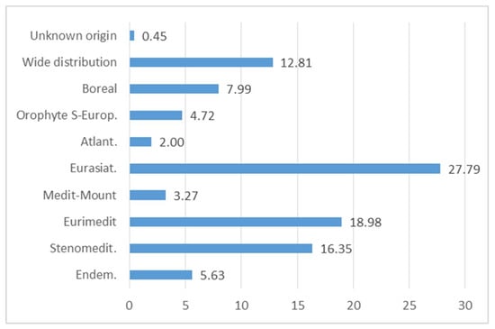 Moreover, for WEPs, the calculation on a national and regional scale included both chorology spectrums based on the chorotypes selected by [] and biological ones [,].