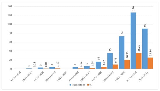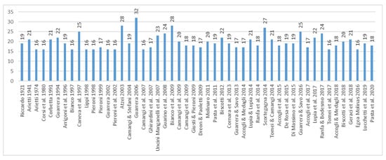 A further aspect then concerned the choice of texts to be entered. Over the past few years, alongside the growing interest in WEPs, there has been a proliferation of writings, both of a scientific nature and for the general public. The chosen window of observation included the past one hundred years (1918–2021), taking as starting point the year 1918—i.e., when Phytoalimurgia pedemontana was published []—because we consider that to be a ground-breaking text for modern botanical alimurgy.