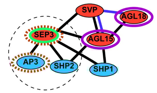 - Fernandez, D.E.; Wang, C.T.; Zheng, Y.M.; Adamczyk, B.J.; Singhal, R.; Hall, P.K.; Perry, S.E. The MADS-domain factors AGAMOUS-LIKE15 and AGAMOUS-LIKE18, along with SHORT VEGETATIVE PHASE and AGAMOUS-LIKE24, are necessary to block floral gene expression during the vegetative phase. Plant Physiol. 2014, 165, 1591–1603. [Google Scholar] [CrossRef] [PubMed]