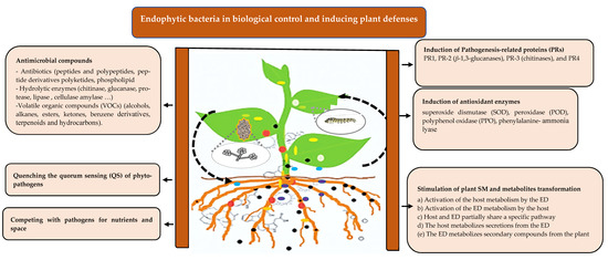 The potentiated responses induced by bacterial endophytes include a variety of defense strategies [153]. These strategies include different mechanisms, as illustrated in Figure 1 and discussed below.