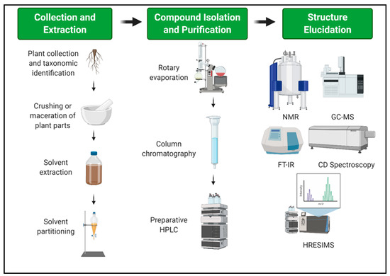 - Rasul, M.G. Extraction, isolation and characterization of natural products from medicinal plants. Int. J. Basic Sci. Appl. Comput. 2018, 2, 1–6. [Google Scholar]