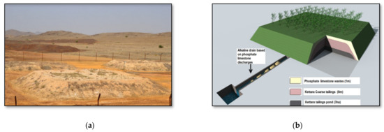 (a) Experimental cells for SDR cover made with phosphate mine wastes; (b) approved scheme for the rehabilitation of the Kettara mine site.