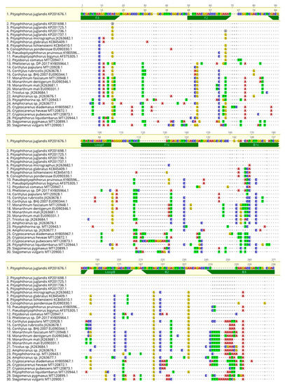 - Altschul, S.F.; Gish, W.; Miller, W.; Myers, E.W.; Lipman, D.J. Basic local alignment search tool. J. Mol. Biol. 1990, 215, 403–410. [Google Scholar] [CrossRef]
