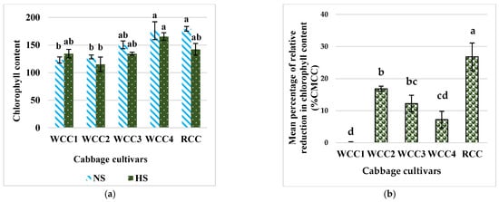 2.2. Effect of Heat Stress on Chlorophyll Content in Brassica oleracea Cultivars