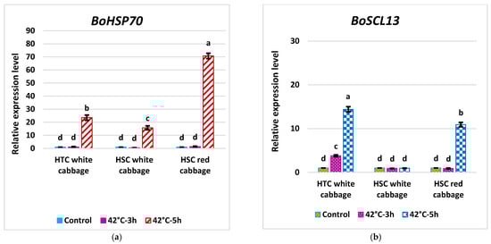2.6. Expression Pattern of BoHSP70 and BoSCL13 as Specific Marker Genes for the Heat Tolerance Trait in Cabbage
