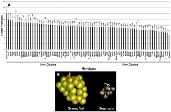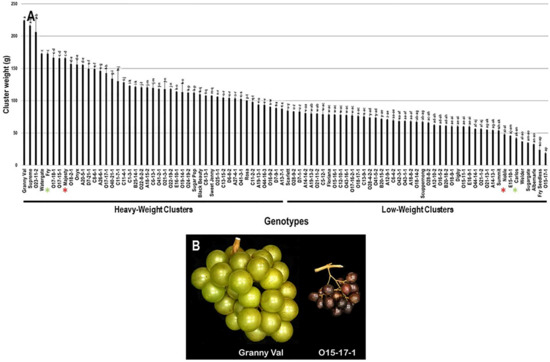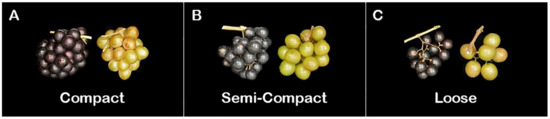 - Naegele, R.P.; Clark, M.; Martinson, T. Getting the perfect cluster shape: Defining traits and developing DNA markers. Am. Vineyard 2020, 29, 22–25. [Google Scholar]