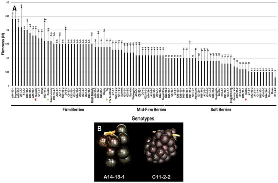 - Bernstein, Z. A new method of firmness measurement of grape berries and other juicy fruits. Vitis 1981, 20, 15–21. [Google Scholar]
