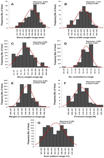 2.4. Frequency Distribution of Berry-Related Traits