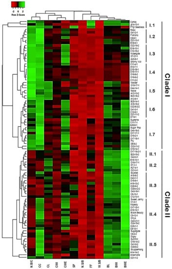 - Narduzzi, L.; Stanstrup, J.; Mattivi, F. Comparing wild American grapes with Vitis vinifera: A metabolomics study of grape composition. J. Agric. Food Chem. 2015, 63, 6823–6834. [Google Scholar] [CrossRef]