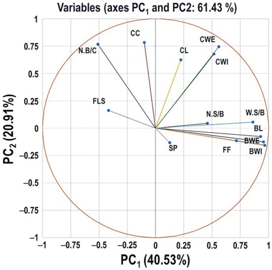 2.6. Principal Component Analysis of Different Evaluated Traits