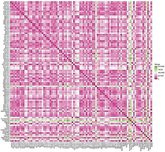 2.7. Dissimilarity Matrix Analysis among the Population