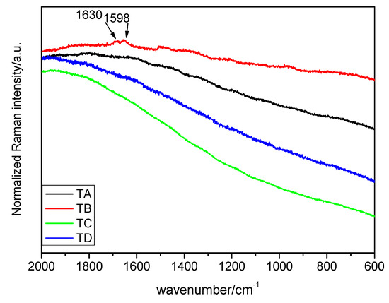 Raman spectra of the seed pericarp in the interval of 2000–600 cm−1 (λ = 633 nm). Treatments: TA: control, TB: magneto-primed seeds, TC: no magnetic treatment, soaked in water seeds, TD: magneto-primed and soaked in water seeds.