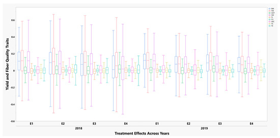 - SHAHZAD, K.; Xue, L.; Tingxiang, Q.; Liping, G.; Huini, T.; Zhang, X.; Hailin, W.; Zhang, M.; Zhang, B.; Xiuqin, Q. Genetic analysis of yield and fiber quality traits in upland cotton (Gossypium hirsutum L.) cultivated in different ecological regions of China. J. Cotton Res. 2019, 2, 1–11. [Google Scholar] [CrossRef]