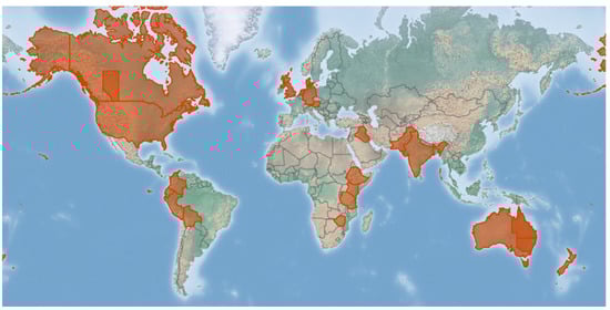 Downy mildew disease of Chenopodium spp. distribution map (CAB international, last modified 21 November 2019 via www.cabi.org/isc/datasheet/39704 (accessed on 10 June 2021).