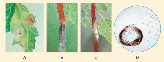 - Logan, C.; Khan, A.A. Comparative Studies of Phoma Spp. Associated with Potato Gangrene in Northern Ireland. Trans. Br. Mycol. Soc. 1969, 52, 9–17. [Google Scholar] [CrossRef]