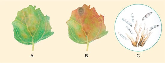- Kempenaar, C.; Horsten, P.; Scheepens, P.C. Effects of Ascochyta Caulina on Photosynthesis of Leaves of Chenopodium Album. New Phytol. 1996, 132, 453–457. [Google Scholar] [CrossRef]