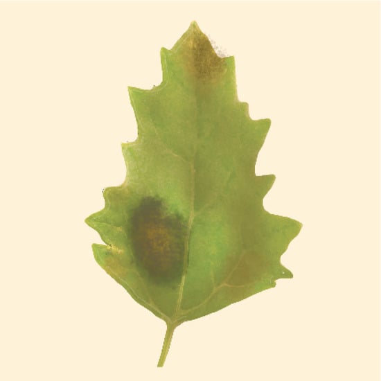 Reliable identification, followed by the assessment of disease, is the first step in efficient management. It is also an important component in the development of disease-tolerant quinoa varieties. It allows for crop-loss assessments and screening for host–pathogen interactions. Assessment methods must be in close agreement with the goals of the trial(s). Evaluations might differ according to the experimental setup. For seedlings, detached leaves and plantlets under controlled conditions and a disease assessment scale can be used (Figure 6). For the assessment of diseased plants in the field, it is necessary to take into account: