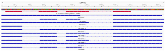 - Zhong, F.; Huang, L.; Qi, L.; Ma, Y.; Yan, Z. Full-length transcriptome analysis of Coptis deltoidea and identification of putative genes involved in benzylisoquinoline alkaloids biosynthesis based on combined sequencing platforms. Plant Mol. Biol. 2020, 102, 477–499. [Google Scholar] [CrossRef]