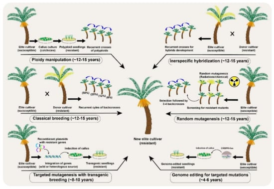 A comparative analysis of different conventional and the new breeding tools (NBTs) to modify desirable genetic modifications in a date palm (Phoenix dactylifera L.) fruit crop.