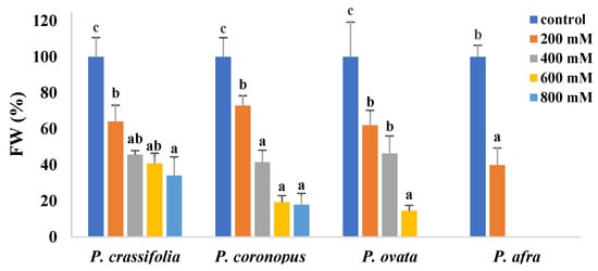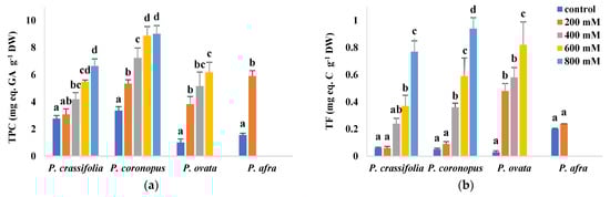 | P. crassifolia | 0.48 ± 0.02 a | 3.56 ± 0.18 b | 5.46 ± 0.22 c | 7.94 ± 0.50 d | 9.45 ± 0.30 e |