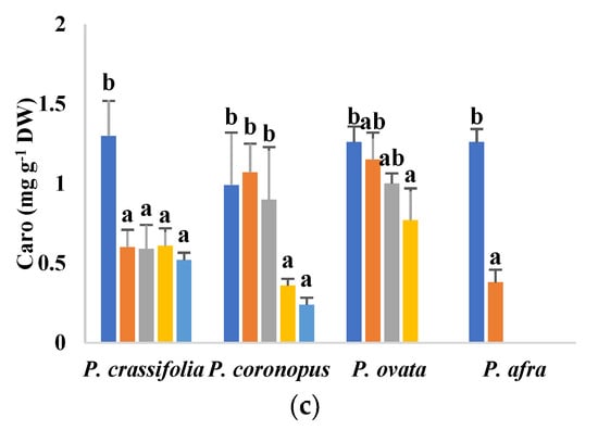 | P. afra | 0.49 ± 0.05 a | 2.15 ± 0.15 b | n.d. | n.d. | n.d. |