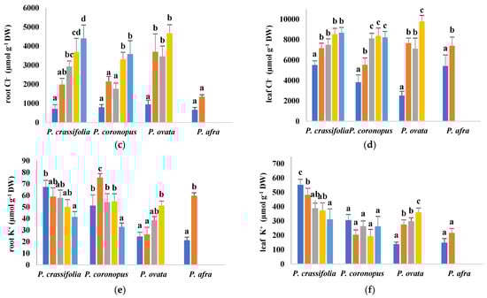 - Erdei, L.; Kuiper, P.J.C. The effect of salinity on growth, cation content, Na+-Uptake and translocation in salt-sensitive and salt-tolerant Plantago species. Physiol. Plant. 1979, 47, 95–99. [Google Scholar] [CrossRef]