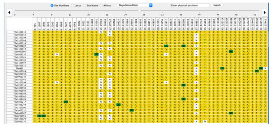 Multiple sequences were generated by the DArTSeq platform using proprietary analytical pipelines (Diversity Array Technology, Canberra, Australia) and mapped to the D. alata v2 reference genome [29]. This produced a raw dataset (single row format) of 22,140 SNPs that were subjected to SNP markers filtering with the following criteria: markers with low sequence depth < 5; SNP markers with missing values > 20%; minor allele frequency (MAF) < 0.05; genotype quality < 20; and heterozygosity > 50. This quality control filtering resulted in 9687 good-quality SNPs distributed across the 20 chromosomes [27].