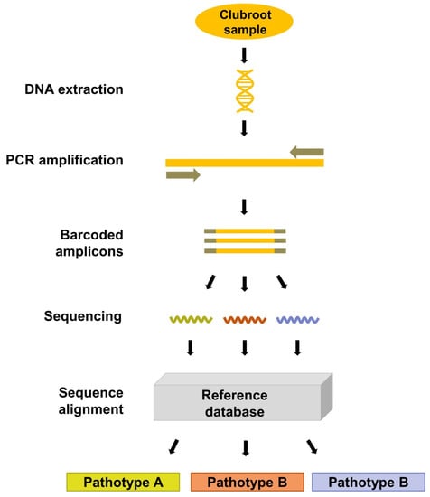 Several limitations are associated with metabarcoding as a diagnostic tool. Bioinformatics expertise and access to bioinformatics facilities are required to analyze the sequencing data competently. Contamination of samples is of greater concern due to the high sensitivity of NGS platforms. Therefore, thorough BLAST testing of the primers against a wide set of microorganisms and preliminary conventional PCR testing of the primers against other species are essential to ensure specificity for the target. Pathotypes in the sample may not be uniformly amplified, as the generation of barcoded amplicons is dependent on conventional PCR. This was evaluated with parasitic soil protist communities and results provided estimations of relative abundance different from those expected [96]. Misrepresentation may also occur during sequencing; three different NGS platforms produced different sequencing outputs when quantitation of artificially assembled fungal communities was evaluated [97]. Due to this, it can only provide approximate pathotype proportions. Nonetheless, with the widespread adoption of genome sequencing in plant pathology research and the identification of variant information, and with the flexibility of these methods for a wide range of experimental designs, metabarcoding and NGS technologies may play a substantial role in clubroot diagnostics.