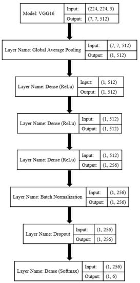 | Global Average Pooling | Dense (ReLU) | Batch Normalization | Dropout | Dense (Softmax) | |