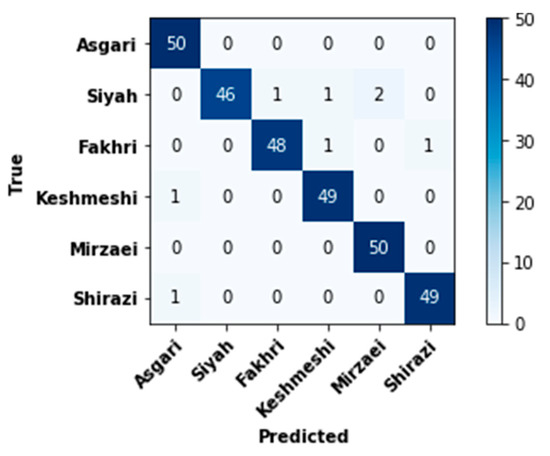 | Shirazi | 99.34 | 0.91 | 98.18 | 4.06 | 98 | 4.47 | 99.6 | 0.89 | 98.8 | 2.17 |