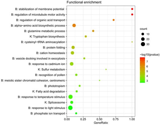 Furthermore, extreme environmental conditions may impact several key biological processes including nutrient or energy intake, photosynthesis, and reproductive process [41]. Our functional annotation showed many PSGs involved in the nitrogen utilization, reproductive process, growth, and metabolic process (Supplementary Table S3). PSGs participating in metabolic processes of important compounds, such as glutamate and sulfur, were annotated in GO biological processes and KEGG pathways. Glutamate plays a central role in plant nitrogen metabolism and is crucial for many metabolic functions, including protein and glutathione synthesis, energy production, maintenance of optimal antioxidant status, and immune function [42]. Nitrogen utilization is vital for alpine species of Saussurea because nutrient deficiency, especially nitrogen deficiency is a typical feature of the alpine screes habitats [43,44]. The uptake and assimilation of sulfur and nitrogen are strongly related, which is an important issue in plant nutrition [45]. Moreover, sulfur plays an important role in fundamental processes such as electron transport, structure, and regulation, and is also associated with photosynthetic oxygen production, abiotic and biotic stress resistance, and secondary metabolism [45,46]. Reproductive success is critical to the continuation of species. Genes involved in the meiotic process (e.g., GO:0051754, GO:0070601, GO:0033046), recognition of pollen (GO:0048544), floral organ formation (GO:0048449), and seed dormancy process (GO:0010162, GO:0022611) were detected under positive selection. These genes provide evidence that alpine species of Saussurea have evolved specific reproductive strategies via positively selected genes associated with the meiotic, flowering, and seed dormancy process for adapting to the short growing season in the harsh environments of the QTP.