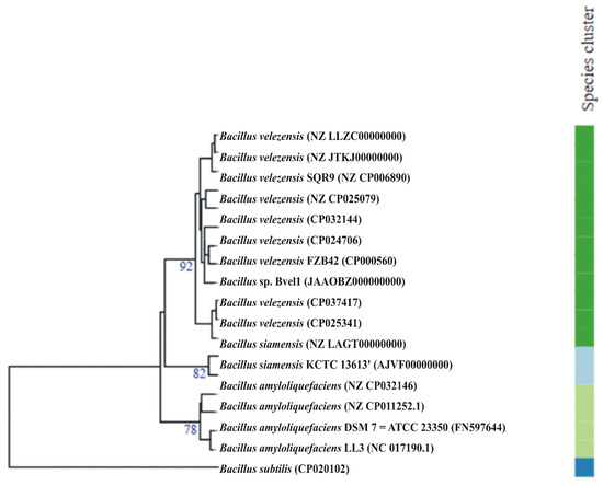 | Bacillus velezensis Bvel1 | 100.00 | 100.00 |