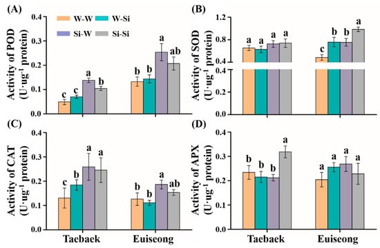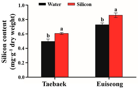 - Hu, J.; Li, Y.; Jeong, B.R. Silicon Alleviates Temperature Stresses in Poinsettia by Regulating Stomata, Photosynthesis, and Oxidative Damages. Agronomy 2020, 10, 1419. [Google Scholar] [CrossRef]