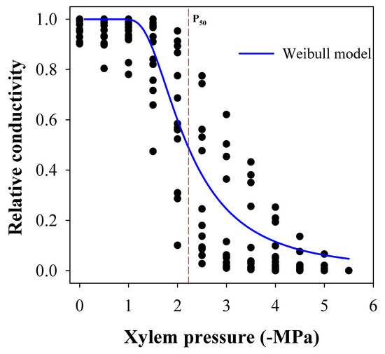 - Rosner, S.; Heinze, B.; Savi, T.; Dalla-Salda, G. Prediction of hydraulic conductivity loss from relative water loss: New insights into water storage of tree stems and branches. Physiol. Plant. 2019, 165, 843–854. [Google Scholar] [CrossRef] [Green Version]