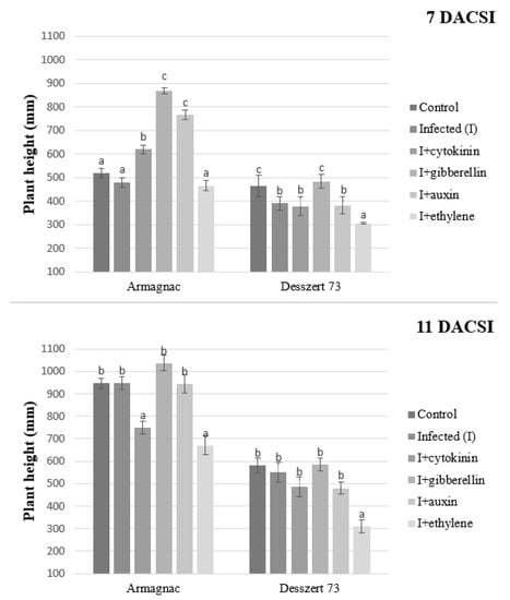 | Plant height | 627 ± 217.74 d | 592 ± 246.20 c | 559 ± 161.55 b | 743 ± 254.19 e | 643 ± 258.47 c | 438 ± 171.67 a |