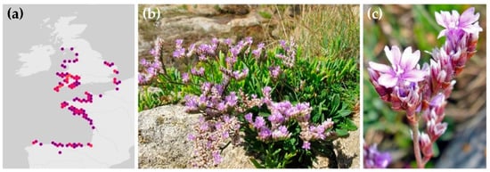 The habitat of L. binervosum includes coastal cliffs, pebble beach margins, steppes, meadows and lagoons. It grows on the Atlantic coasts of Europe, from the south-west United Kingdom and north-west France to northern Spain, with a number of geographically restricted segregate taxa (Figure 1a).