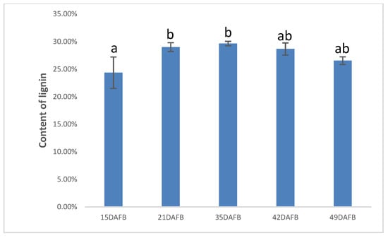 Lignin content in the pulp powder. Different small letters indicate significant difference at 0.05 level.